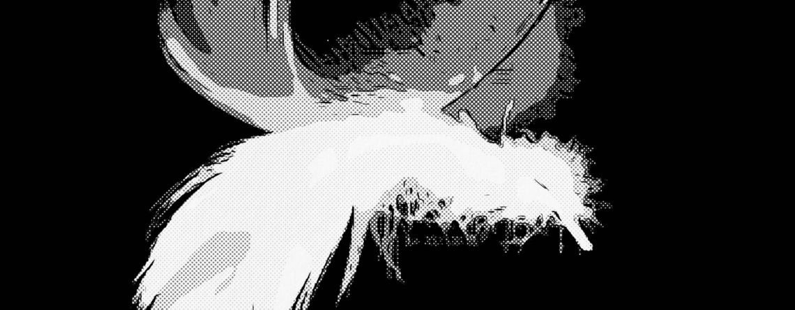 Une plume sombre comme une nuit d’été s’échappe du soulier. Une plume d’oiseau libre, fine et longue, qui valse dans l’air.